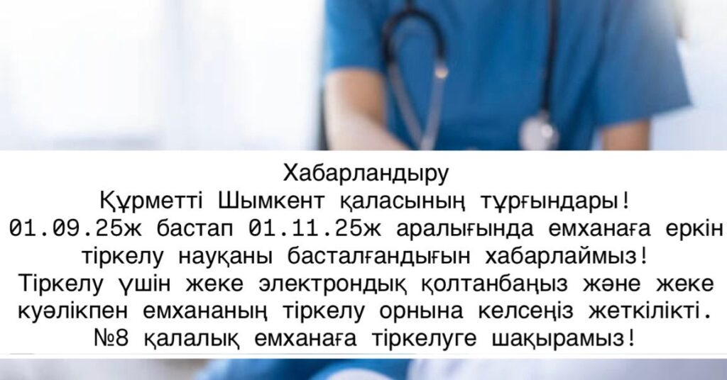 Nº8 қалалық емханаға тіркелуге шақырамыз!