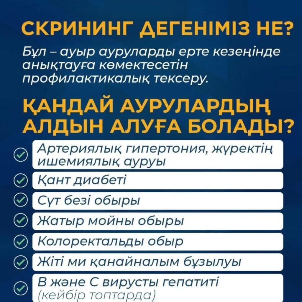 Денсаулығыңызды қорғаңыз – скринингтен уақытылы өтіңіз!