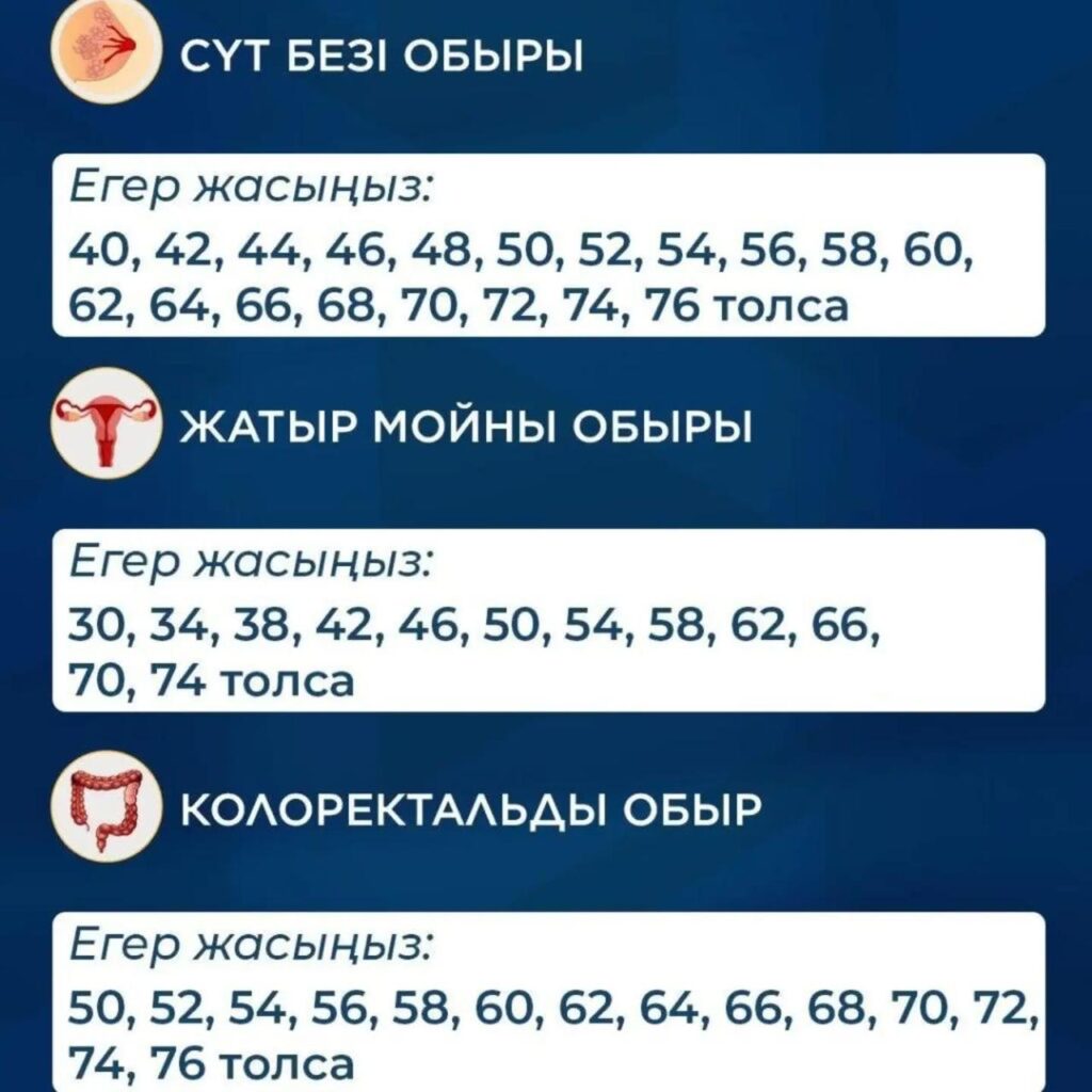 Айта кетерлігі, қазір онкологиялық скринингтер МӘМС жүйесіндегі мәртебенің бар-жоғына қарамастан, барлық азаматтарға қолжетімді.